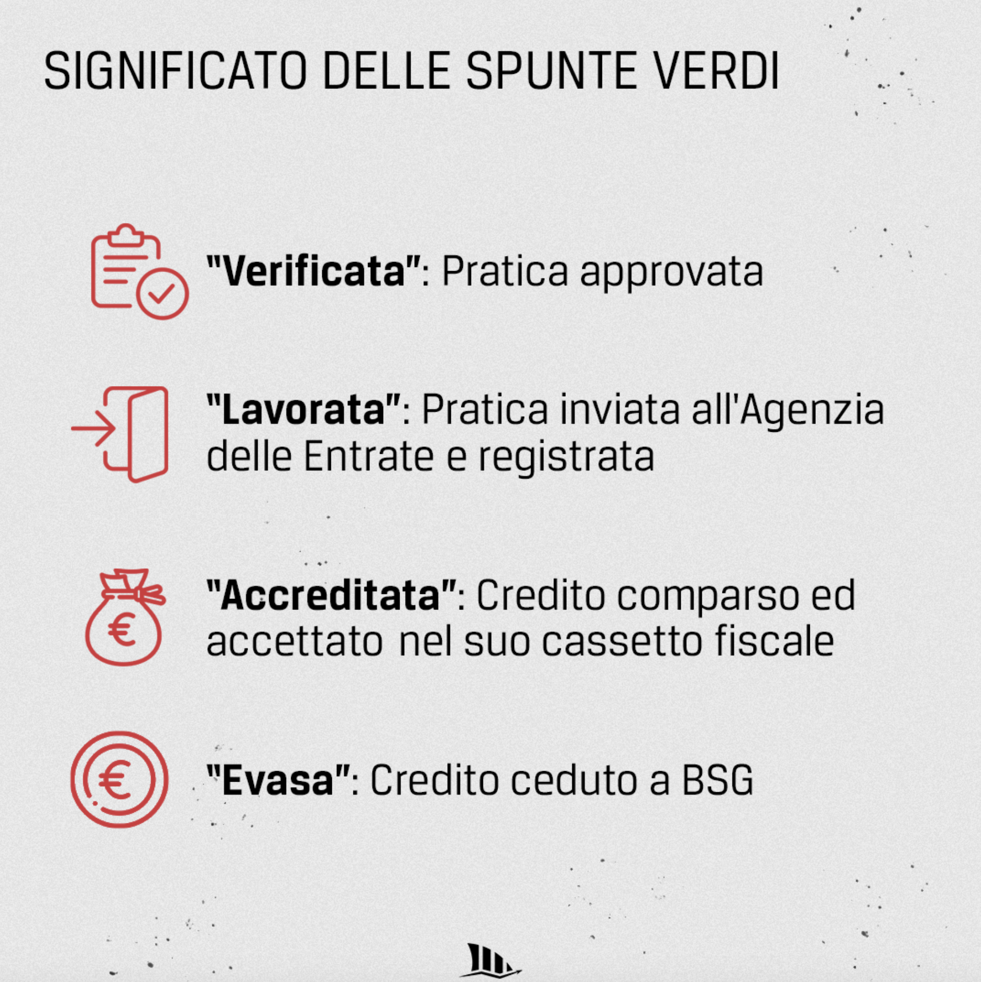 -“Lavorata”: Comunicazione di cessione inviata all'Agenzia delle Entrate e registrata -“Accreditata”: Credito comparso ed accettato nel suo cassetto fiscale