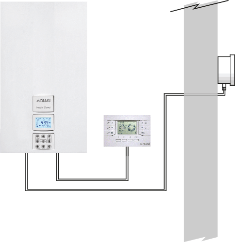 Tutte le zone comandate da cronotermostati verranno gestite dalla curva di termoregolazione impostata in caldaia, la zona comandata dal comando remoto sarà gestita dalla curva di termoregolazione in esso impostata. In caso di impianti a più zone ad alta e bassa temperatura si consiglia di utilizzare il gestore d’impianto BIASI MULTIzone.