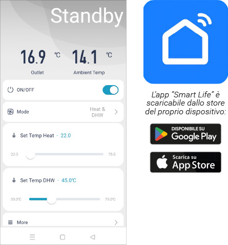 Per il prodotto è disponibile l’app “Smart Life” che, grazie alla connessione Wi-Fi, consente all’utente di regolare il prodotto attraverso lo smartphone.