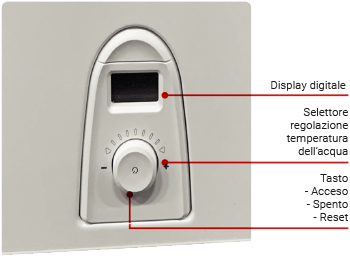 Grazie alla pratica e inuitiva rotella di regolazione la temperatura dell’acqua può essere impostata tra 35°C e 65°C, permettendo di soddisfare esigenze differenti con la massima facilità d’uso.